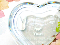 結婚祝い・出産祝い・赤ちゃんの手形足形プレートなどのとっておきギフトを提案するガラス彫刻の工房です。 HOME サイトマップ ごあいさつ ご利用ガイド 送料 お問い合わせ |